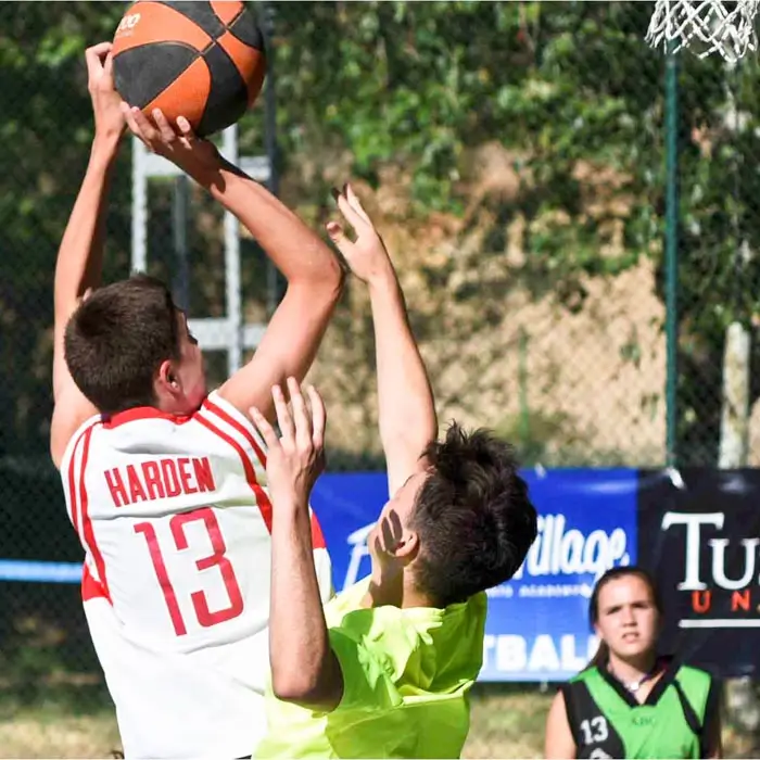 the Village features modern sporting facilities on a 25,000 square meter campus, including an indoor sports center, outdoor fields, and both indoor and outdoor courts for tennis, padel, basketball, and volleyball—ideal for an enriching summer camp coaching experience.